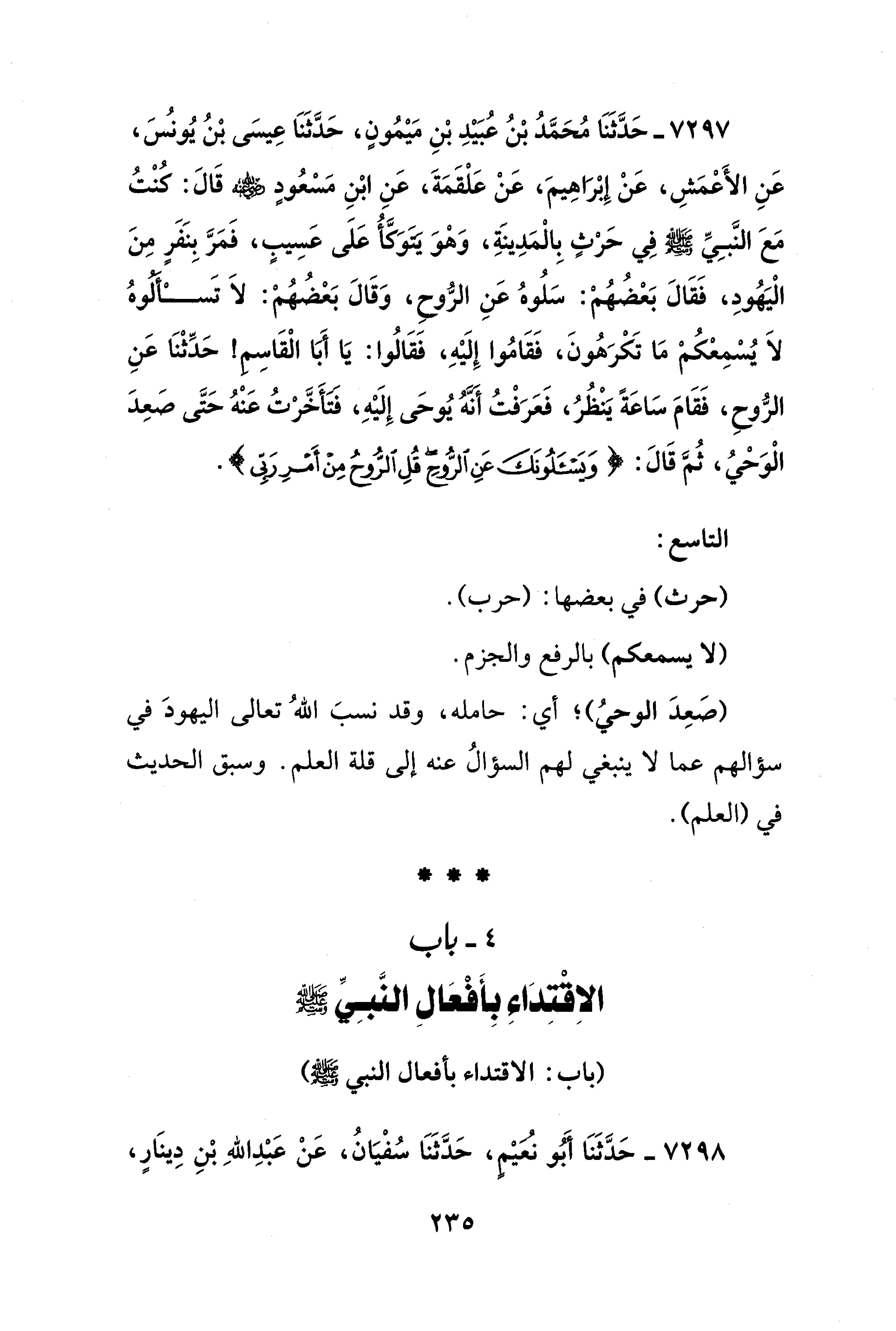 4 - باب الاِقْتِدَاءِ بأَفْعَالِ النَّبِيِّ - صلى الله عليه وسلم -