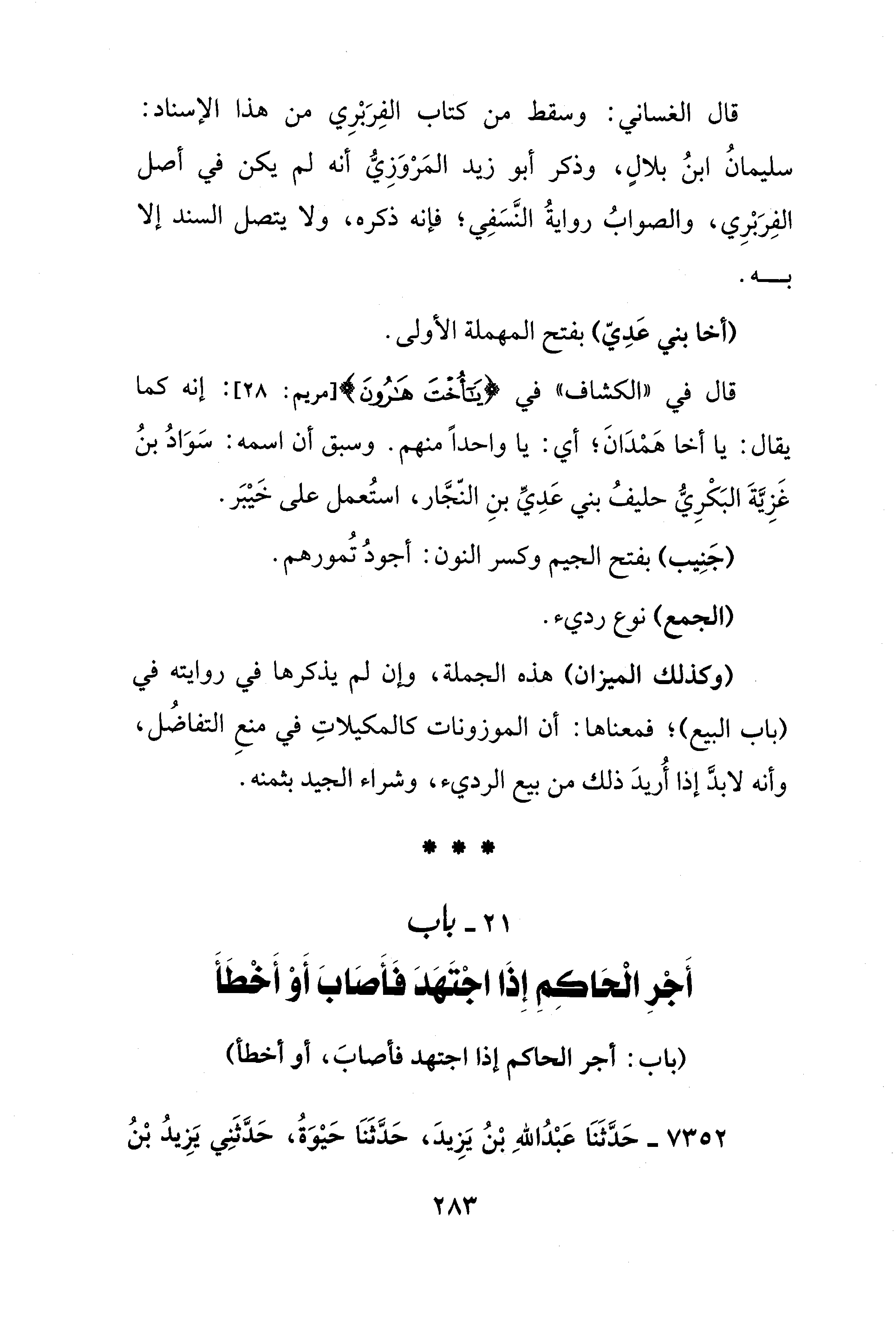 21 - باب أَجْرِ الْحَاكِمِ إِذَا اجْتَهَدَ فَأَصَابَ أَوْ أَخْطَأَ