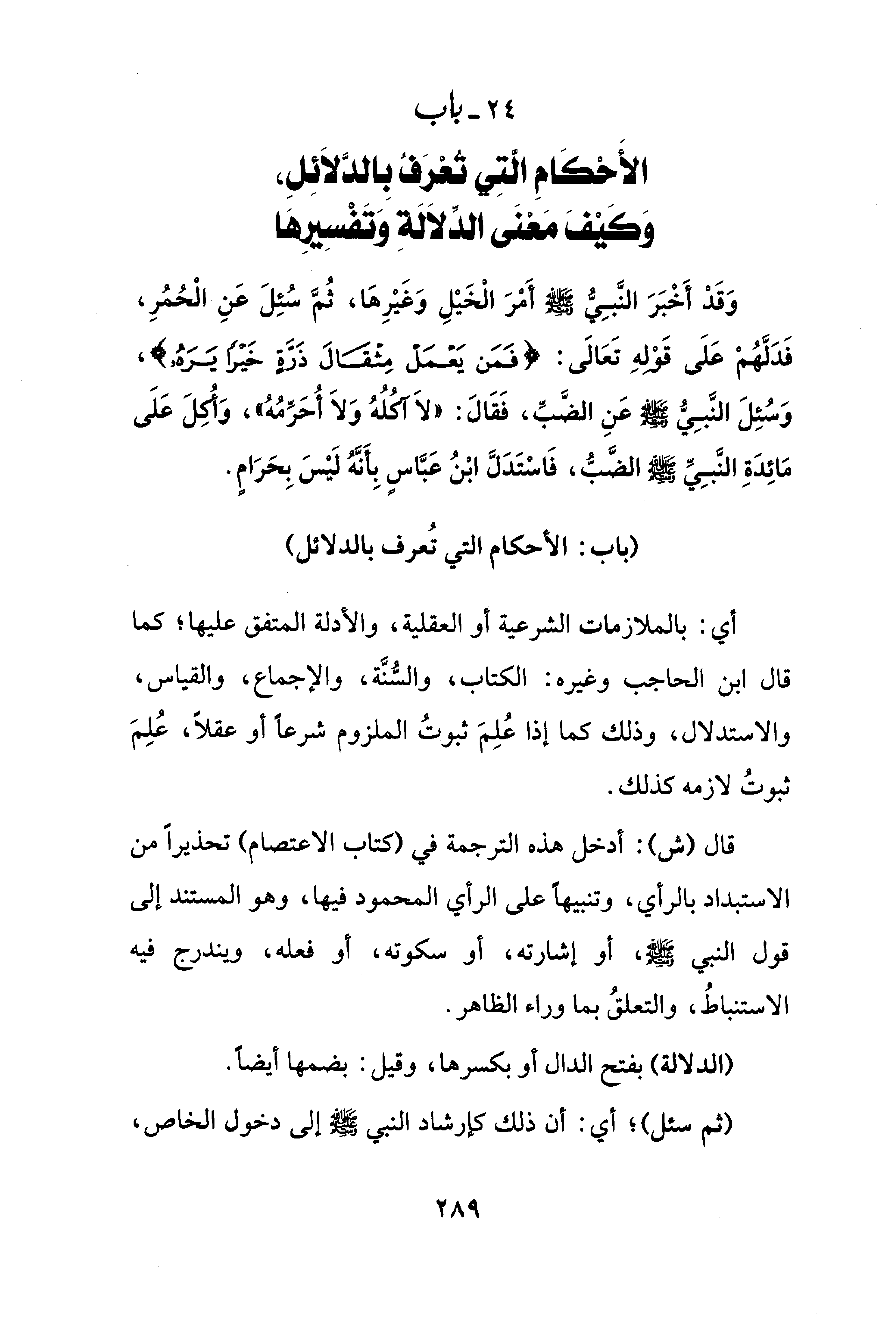 24 - باب الأَحْكَامِ الَّتِي تُعْرَفُ بِالدَّلاَئِلِ، وَكَيْفَ مَعْنَى الدِّلاَلَةِ وَتَفْسِيرِهَا