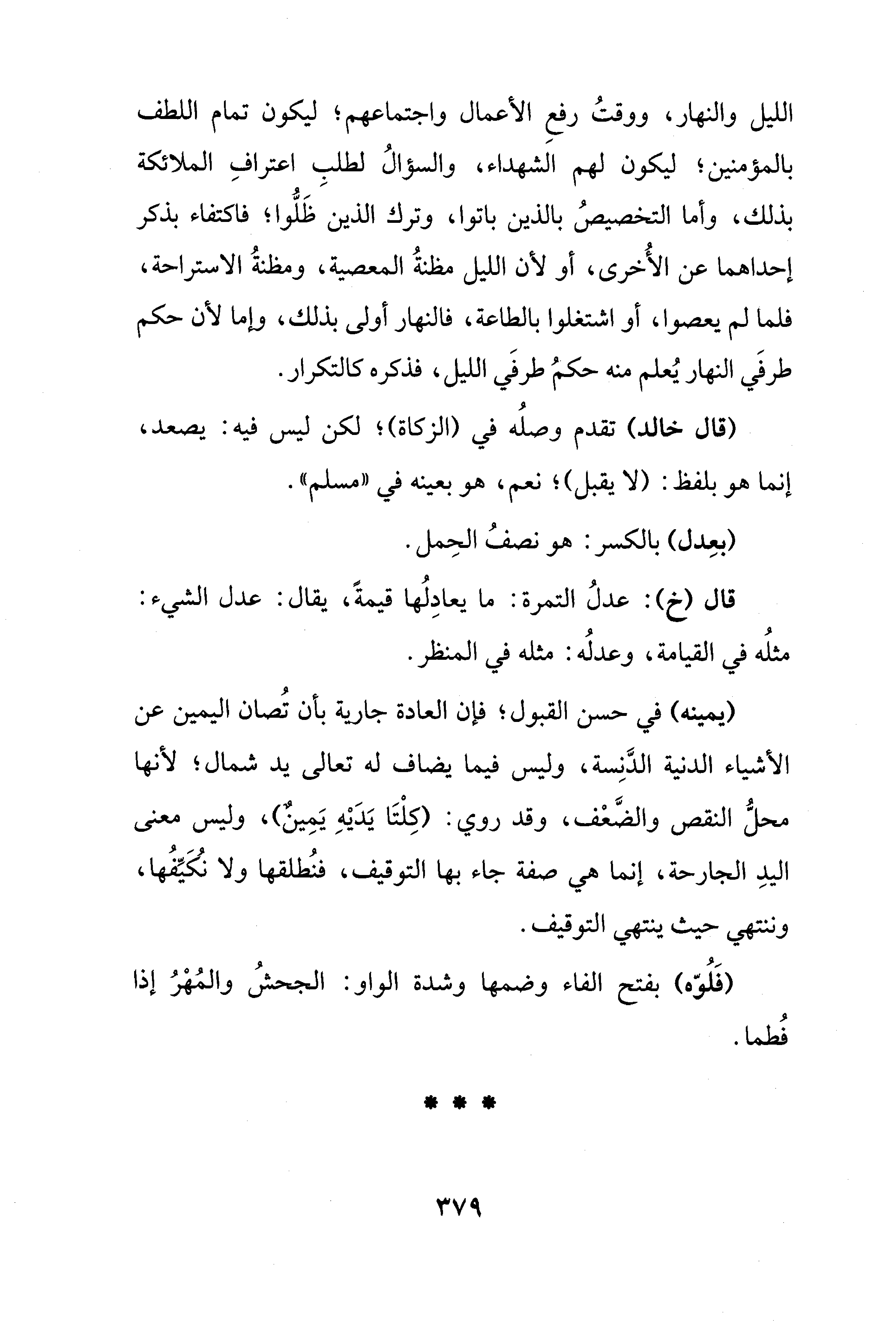 قال (خ): عدلُ التمرة: ما يعادِلُها قيمةً، يقال: عدل الشيء: مثلُه في القيامة، وعدلُه: مثله في المنظر.