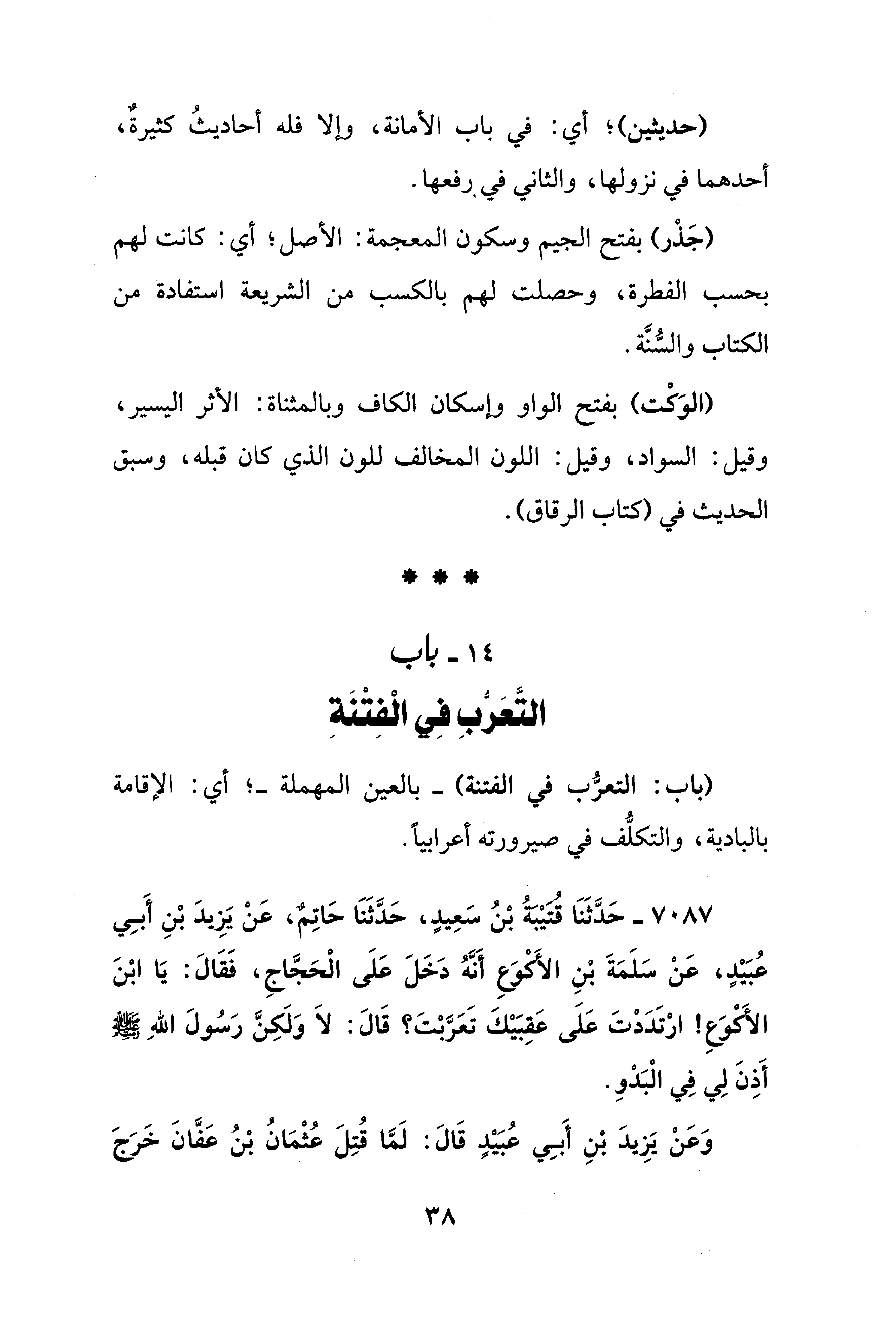 14 - باب التَّعَرُّبِ فِي الْفِتْنَةِ