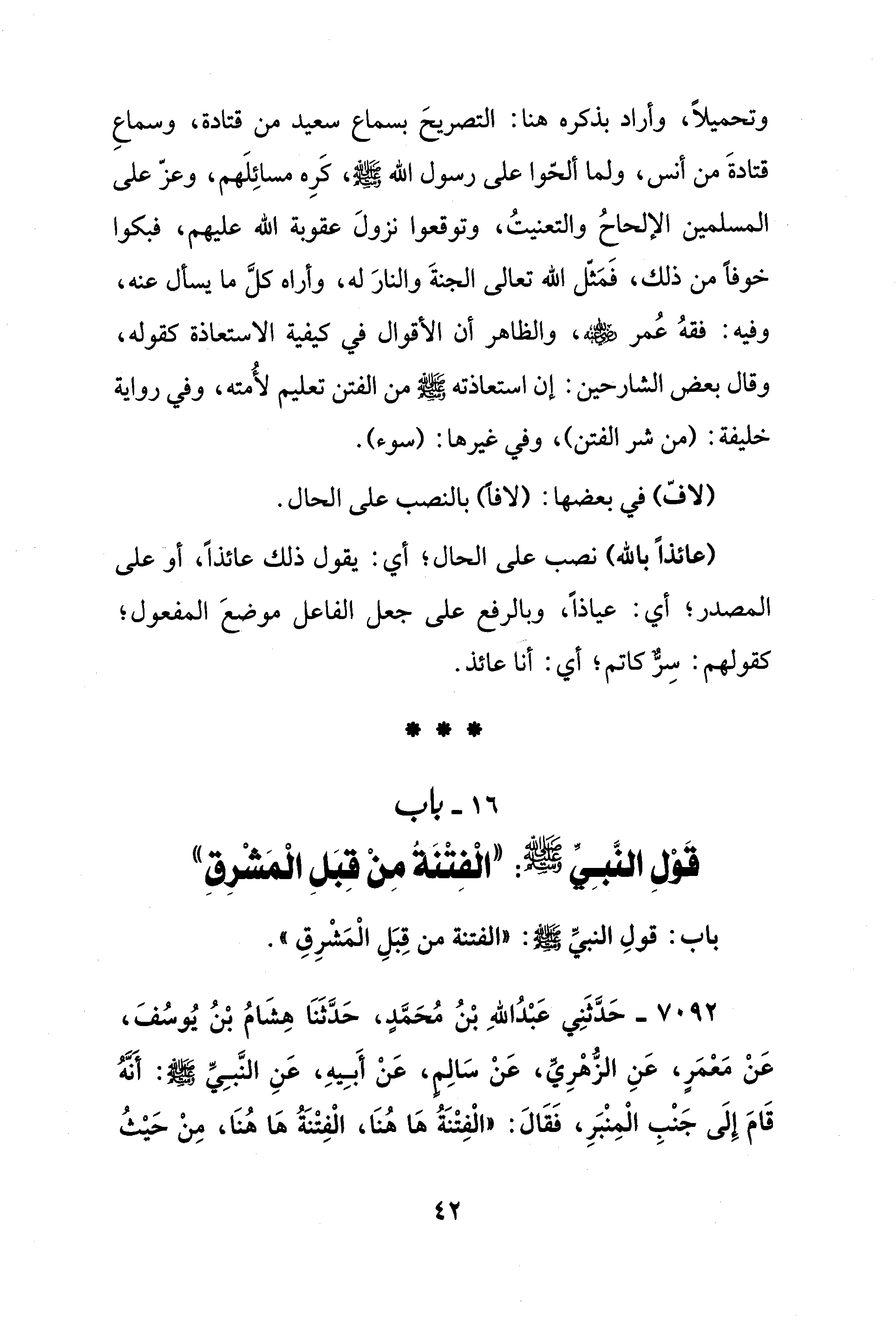 16 - باب قولِ النَّبِيِّ - صلى الله عليه وسلم -: "الْفِتْنَةُ مِنْ قِبَلِ الْمَشْرِقِ"