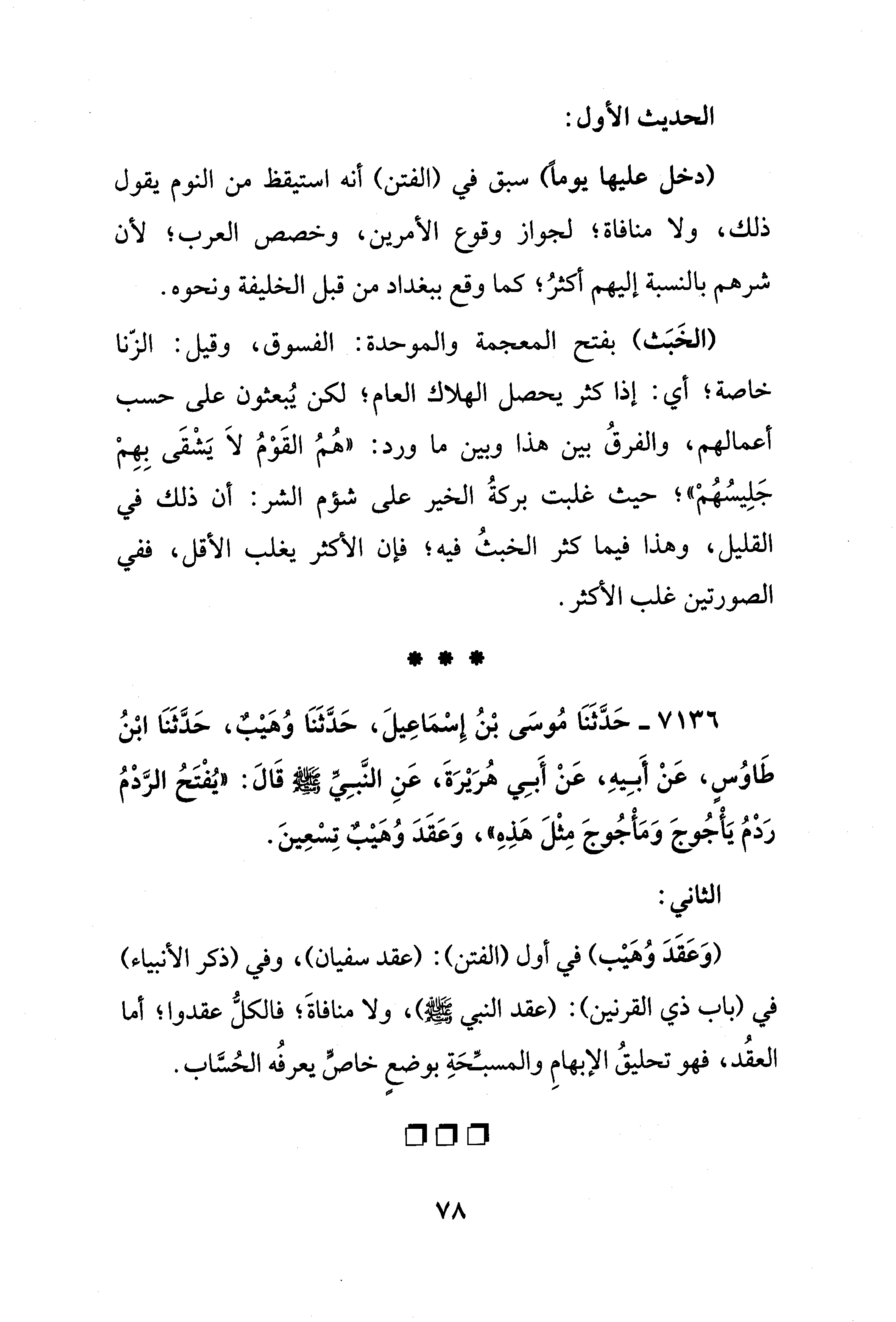 7136 - حَدَّثَنَا مُوسَى بْنُ إِسْمَاعِيلَ، حَدَّثَنَا وُهَيْب، حَدَّثَنَا ابْنُ طَاوُسٍ، عَنْ أَبِيهِ، عَنْ أَبِي هُرَيْرَةَ، عَنِ النَّبِي - صلى الله عليه وسلم - قَالَ: "يُفْتَحُ الرَّدْمُ رَدْمُ يَأجُوجَ وَمَأْجُوجَ مِثْلَ هَذ"، وَعَقَدَ وُهَيْبٌ تِسْعِينَ.