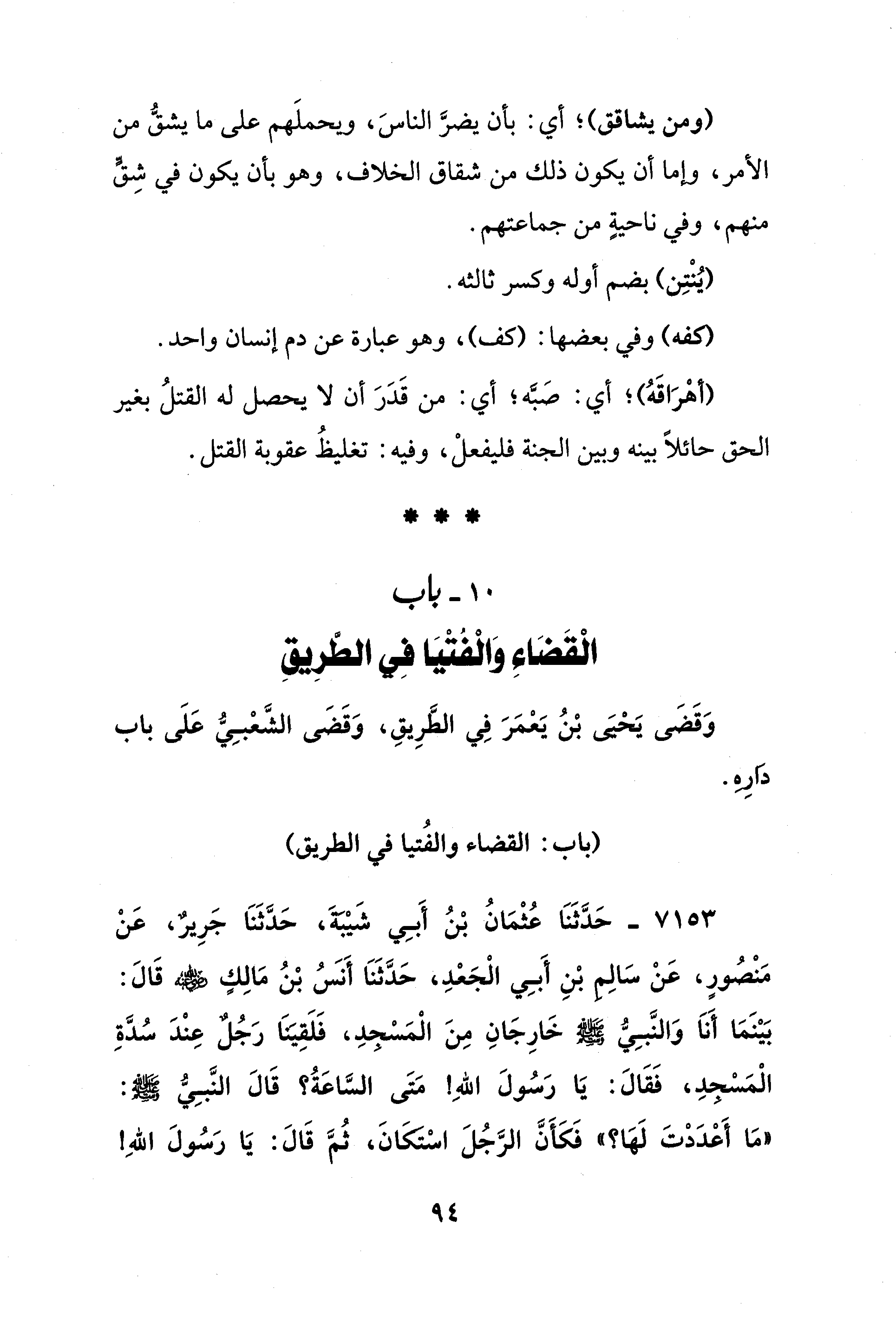 10 - باب الْقَضَاءِ وَالْفُتْيَا فِي الطرِيق
