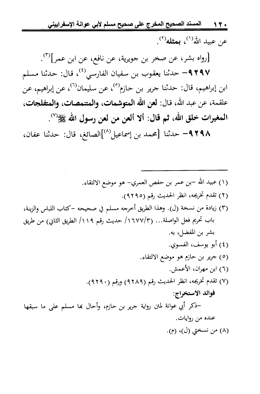 - ذكر أبي عوانة لمتن رواية جرير بن حازم، وأحال بها مسلم على ما سبقها عنده من روايات.
