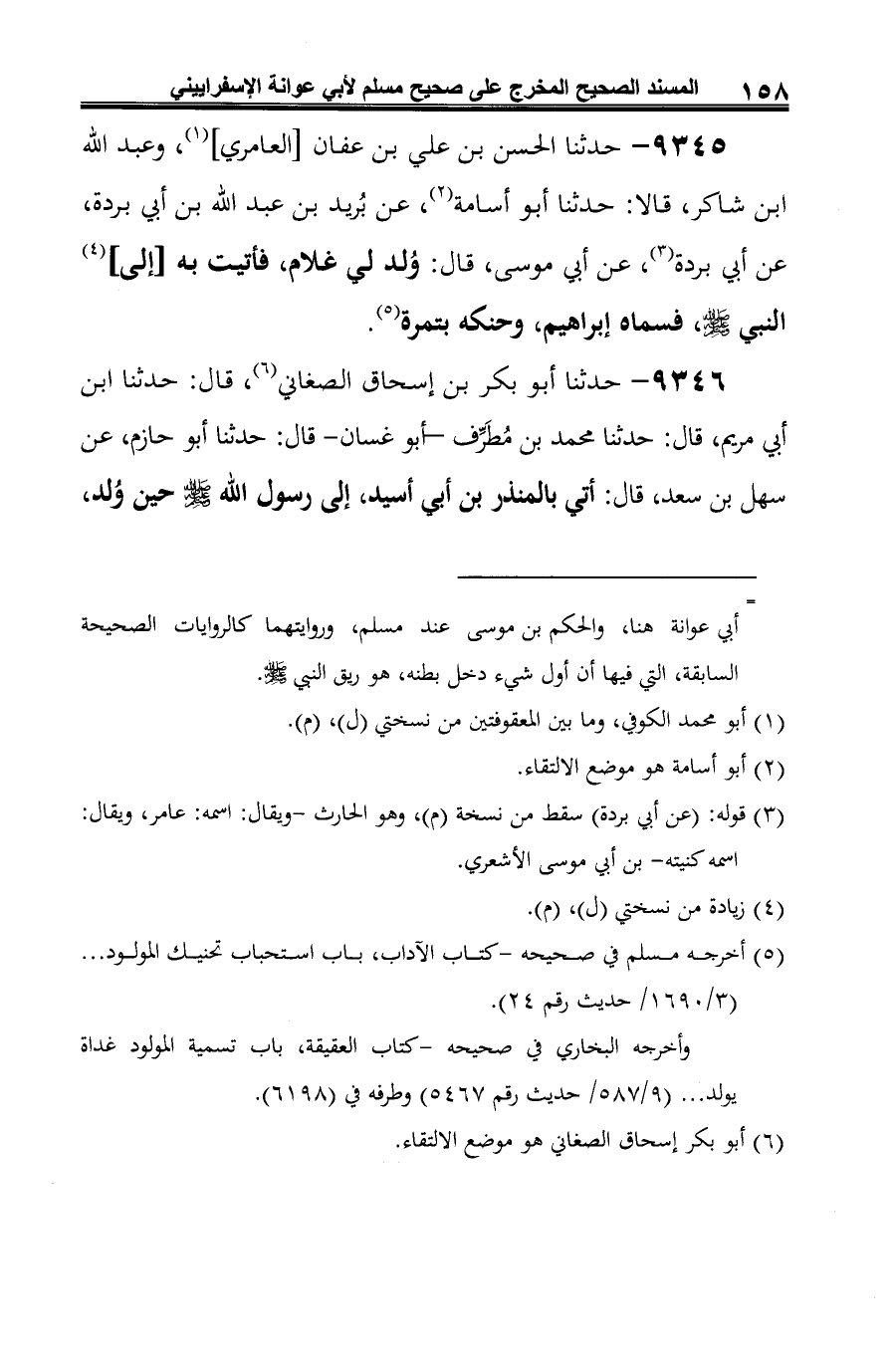(¬5) أخرجه مسلم في صحيحه -كتاب الآداب، باب استحباب تحنيك المولود ... (3/ 1690/ حديث رقم 24).