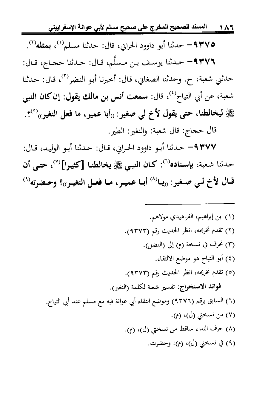 (¬1) السابق برقم (9376) وموضع التقاء أبي عوانة فيه مع مسلم عند أبي التياح.