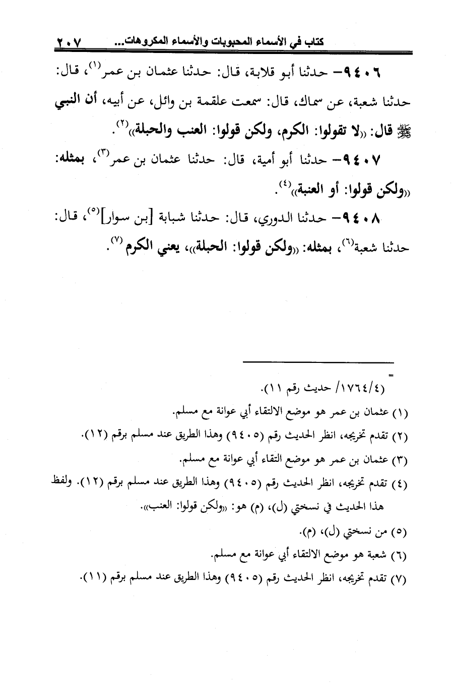 (¬2) تقدم تخريجه، انظر الحديث رقم (9405) وهذا الطريق عند مسلم برقم (12). ولفظ هذا الحديث في نسختي (ل)، (م) هو: "ولكن قولوا: العنب".