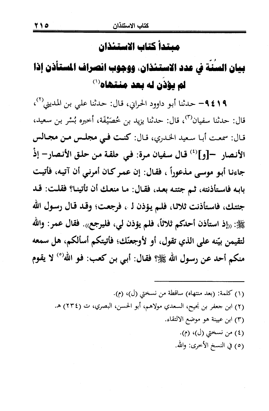 (¬5) أخرجه مسلم في صحيحه -كتاب الآداب، باب الاستئذان (3/ 1694 /حديث 33).
