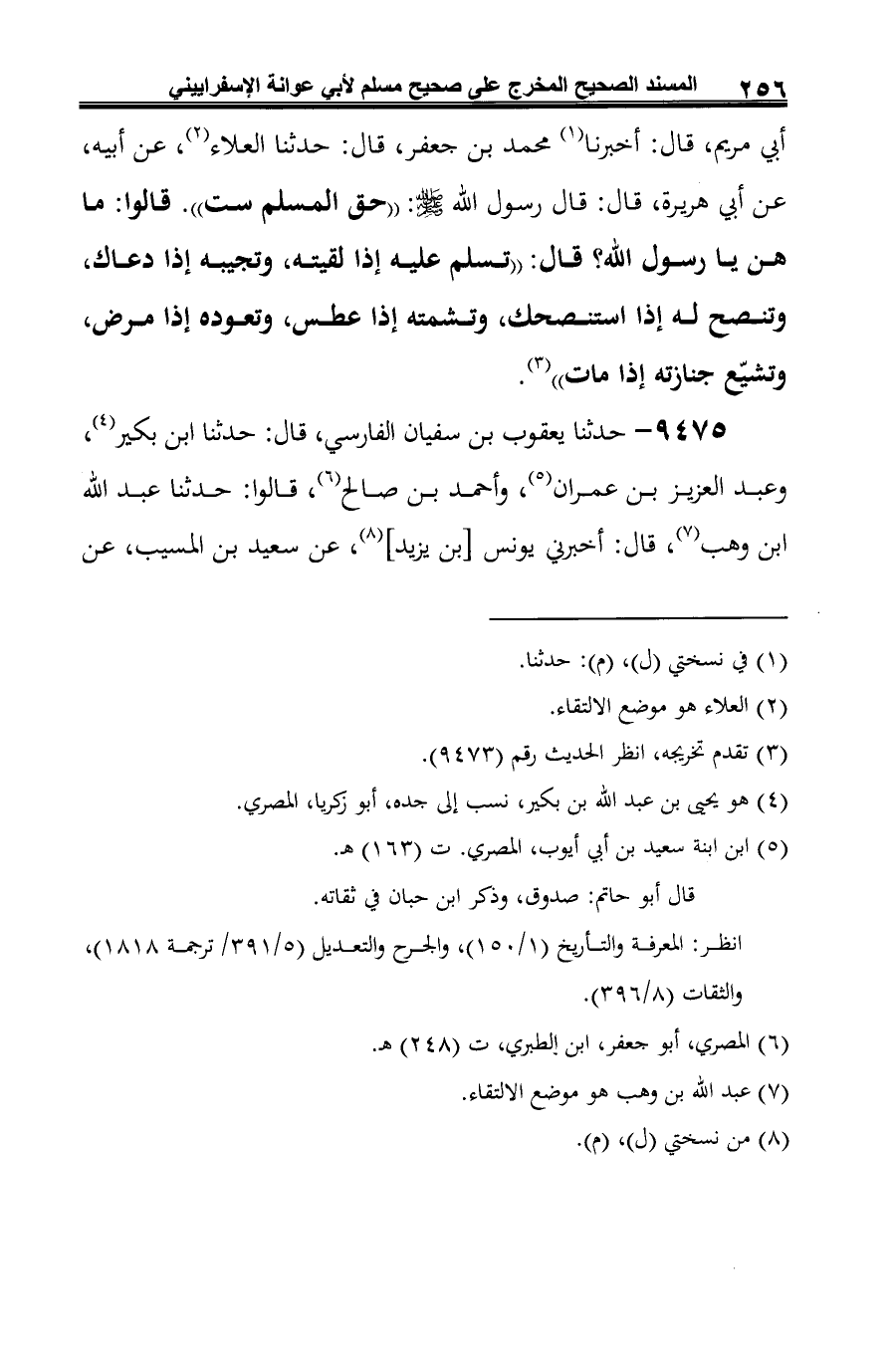 (¬7) تقدّم تخريجه، انظر الحديث رقم (9473)، وهذا الطريق عند مسلم برقم (4).