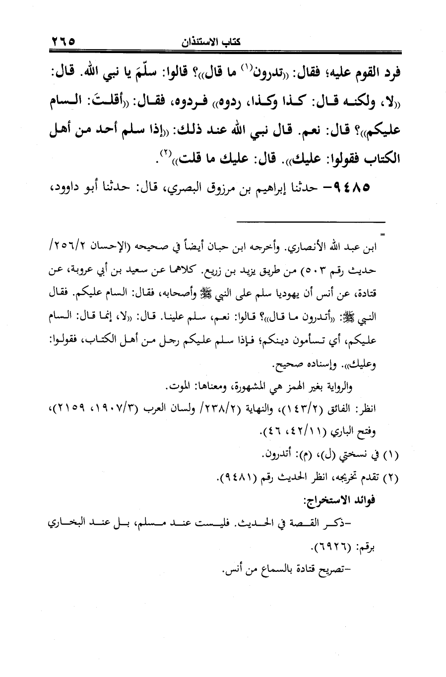 9485 - حدثنا إبراهيم بن مرزوق البصري، قال: حدثنا أبو داوود،