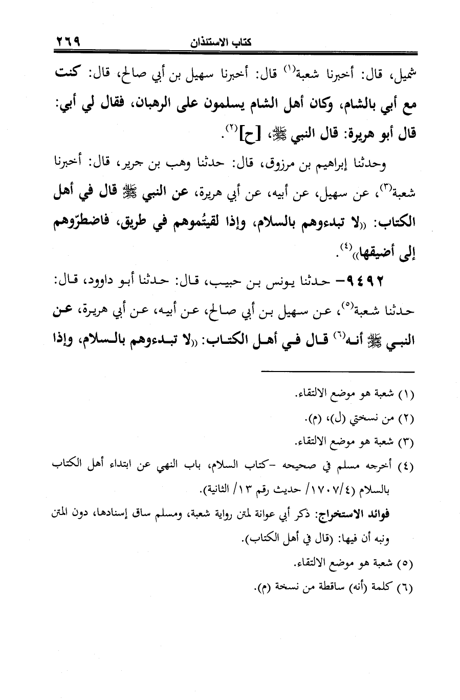 9492 - حدثنا يونس بن حبيب، قال: حدثنا أبو داوود، قال: حدثنا شعبة (¬1)، عن سهيل بن أبي صالح، عن أبيه، عن أبي هريرة، عن النبي -صلى الله عليه وسلم- أنه (¬2) قال في أهل الكتاب: "لا تبدءوهم بالسلام، وإذا