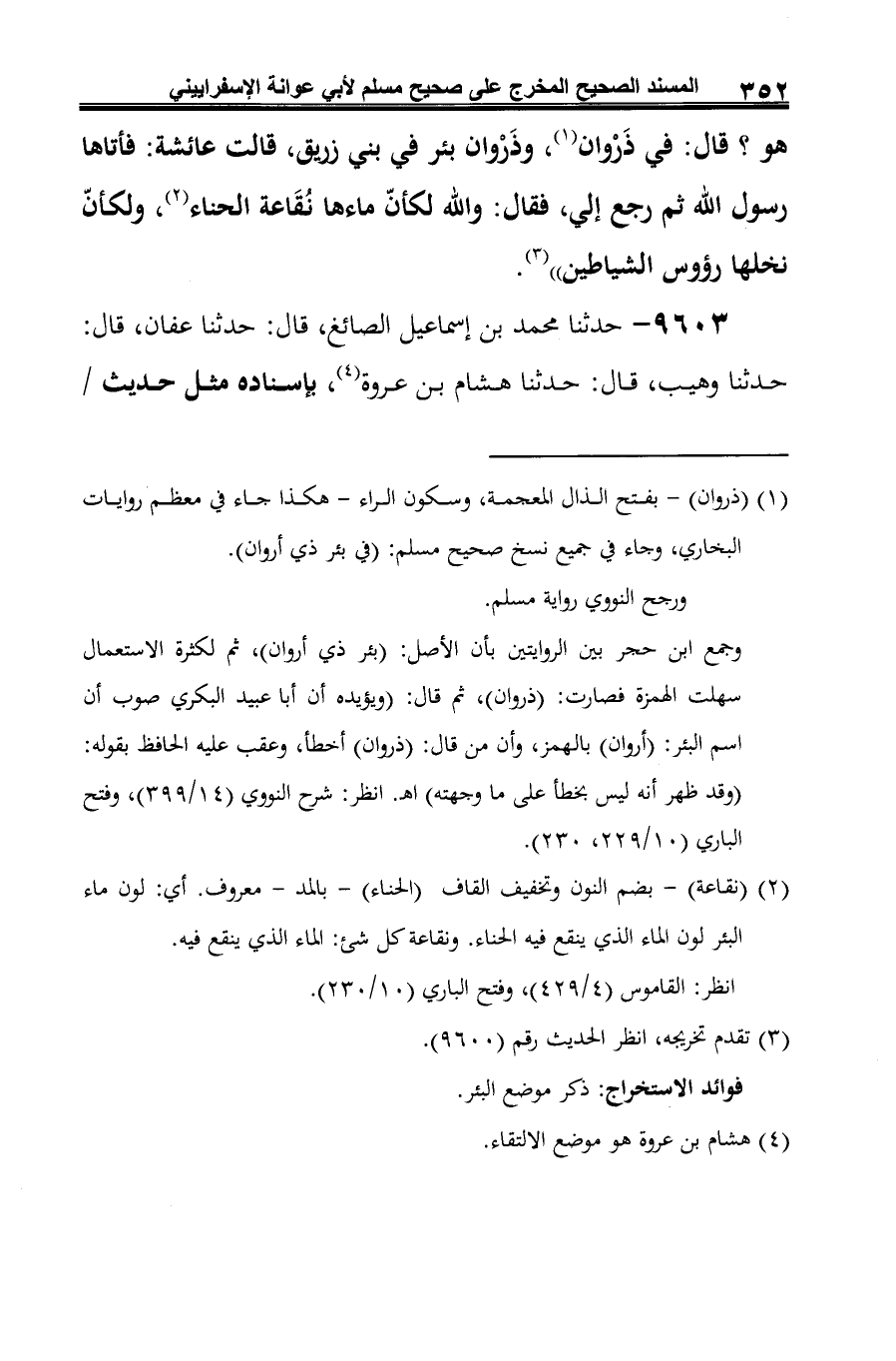 9603 - حدثنا محمَّد بن إسماعيل الصائغ، قال: حدثنا عفان، قال: حدثنا وهيب، قال: حدثنا هشام بن عروة (¬1)، بإسناده مثل حديث