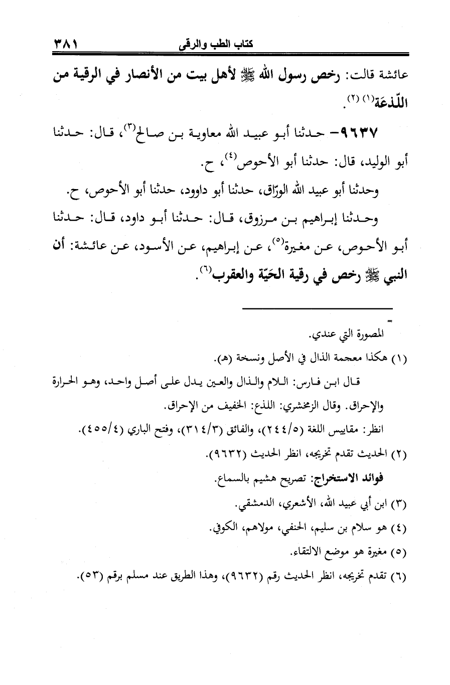 وحدثنا إبراهيم بن مرزوق، قال: حدثنا أَبو داود، قال: حدثنا أَبو الأحوص، عن مغيرة (¬3)، عن إبراهيم، عن الأسود، عن عائشة: أن النبي -صلى الله عليه وسلم- رخص في رقية الحَيّة والعقرب (¬4).