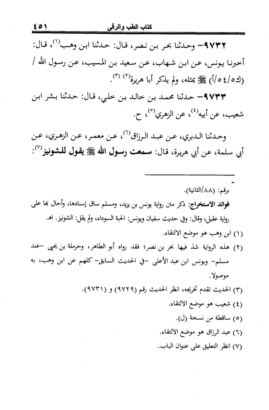 9732 - وحدثنا بحر بن نصر، قال: حدثنا ابن وهب (¬1)، قال: أخبرنا يونس، عن ابن شهاب، عن سعيد بن المسيب، عن رسول الله -صلى الله عليه وسلم- بمثله، ولم يذكر أبا هريرة (¬2) (¬3).