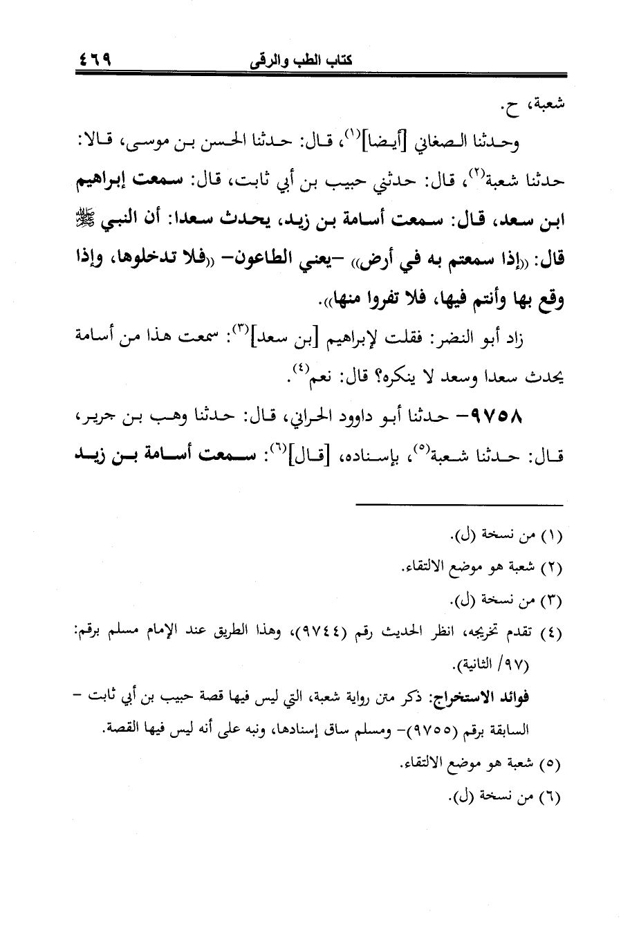 9758 - حدثنا أَبو داوود الحراني، قال: حدثنا وهب بن جرير، قال: حدثنا شعبة (¬1)، بإسناده، [قال] (¬2): سمعت أسامة بن زيد