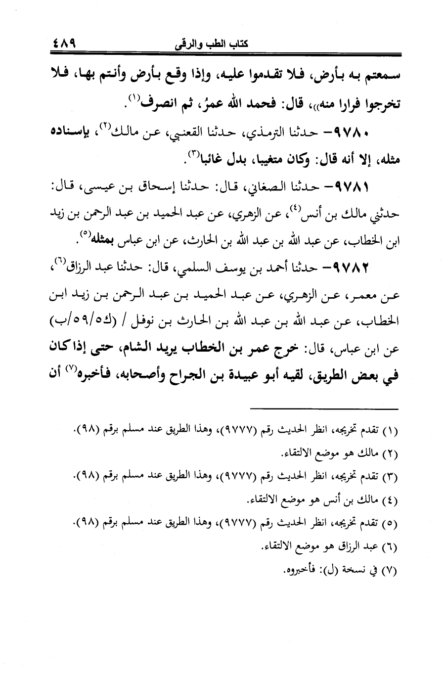 9781 - حدثنا الصغاني، قال: حدثنا إسحاق بن عيسى، قال: حدثني مالك بن أنس (¬1)، عن الزهري، عن عبد الحميد بن عبد الرحمن بن زيد ابن الخطاب، عن عبد الله بن عبد الله بن الحارث، عن ابن عباس بمثله (¬2).