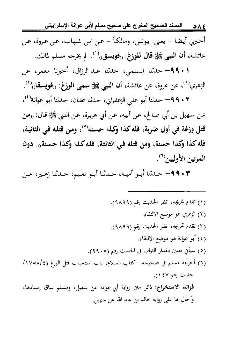 فوائد الاستخراج: ذكر متن رواية أبي عوانة عن سهيل، ومسلم ساق إسنادها، وأحال بها على رواية خالد بن عبد الله عن سهيل.