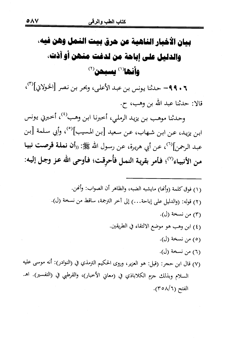 (¬6) أخرجه مسلم في صحيحه -كتاب السلام، باب النهي عن قتل النمل (4/ 1759/ حديث رقم 148).