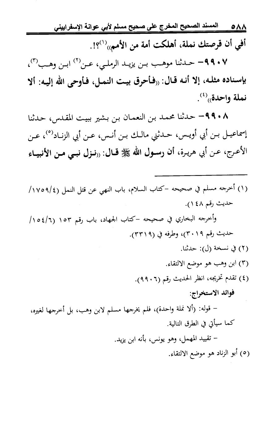 - قوله: (ألا نملة واحدة)، فلم يخرجها مسلم لابن وهب، بل أخرجها لغيره، كما سيأتي في الطرق التالية.