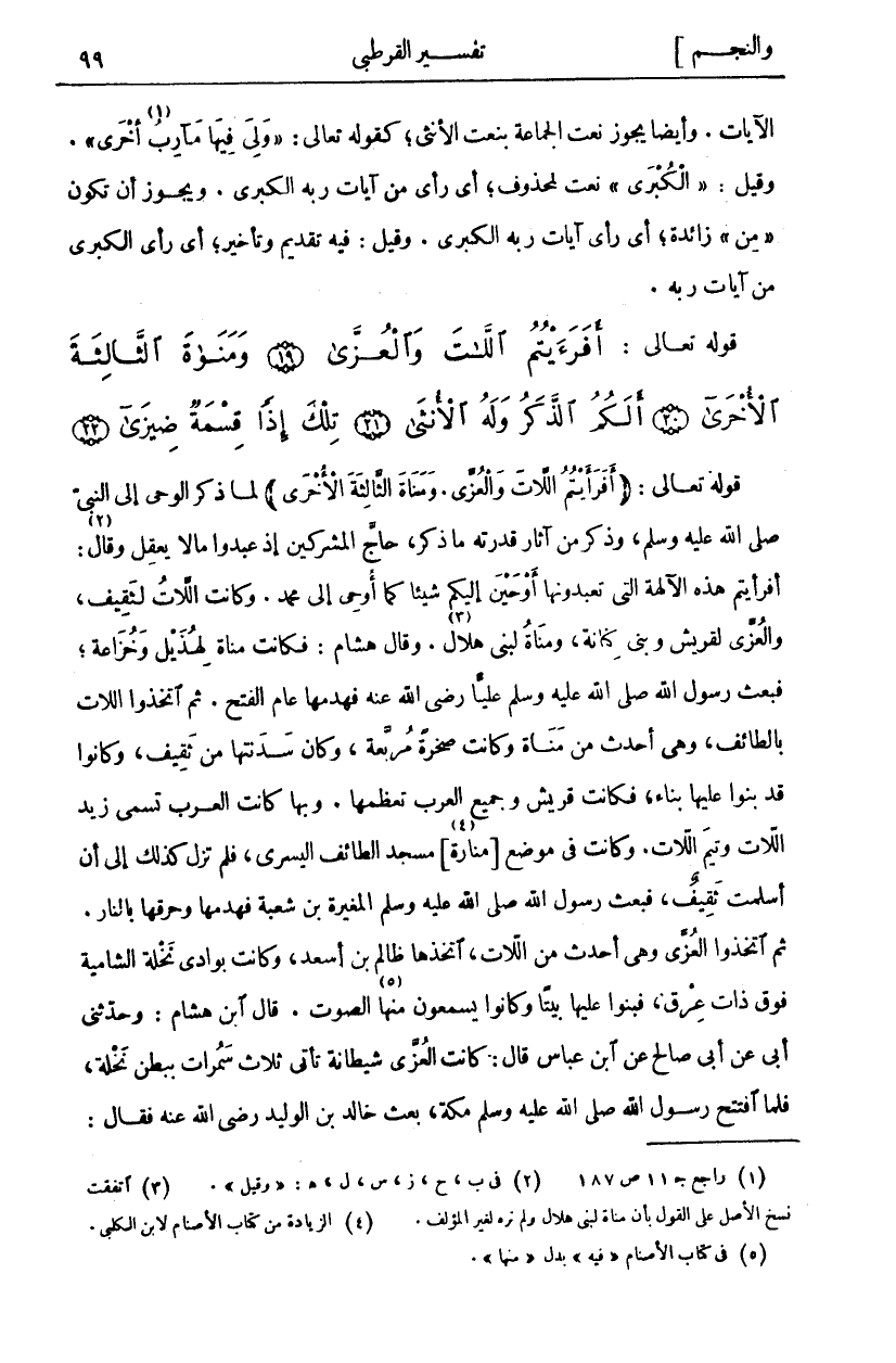 أَفَرَأَيْتُمُ اللاَّتَ وَالْعُزَّى (١٩) وَمَناةَ الثَّالِثَةَ الْأُخْرى (٢٠) أَلَكُمُ الذَّكَرُ وَلَهُ الْأُنْثى (٢١) تِلْكَ إِذاً قِسْمَةٌ ضِيزى (٢٢)