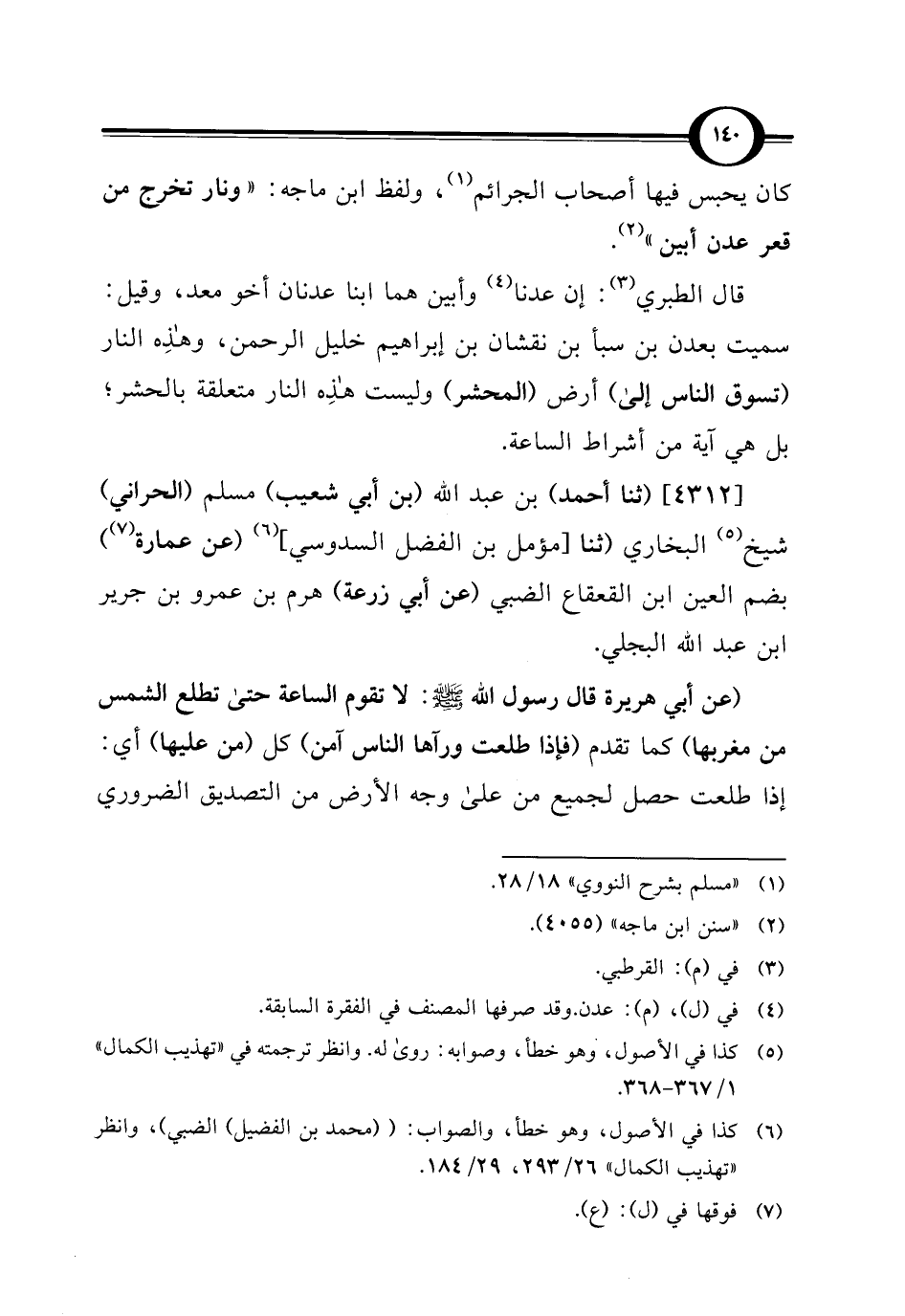 [4312] (ثنا أحمد) بن عبد اللَّه (بن أبي شعيب) مسلم (الحراني) شيخ (¬5) البخاري (ثنا [مؤمل بن الفضل السدوسي] (¬6) (عن عمارة) (¬7) بضم العين ابن القعقاع الضبي (عن أبي زرعة) هرم بن عمرو بن جرير ابن عبد اللَّه البجلي.