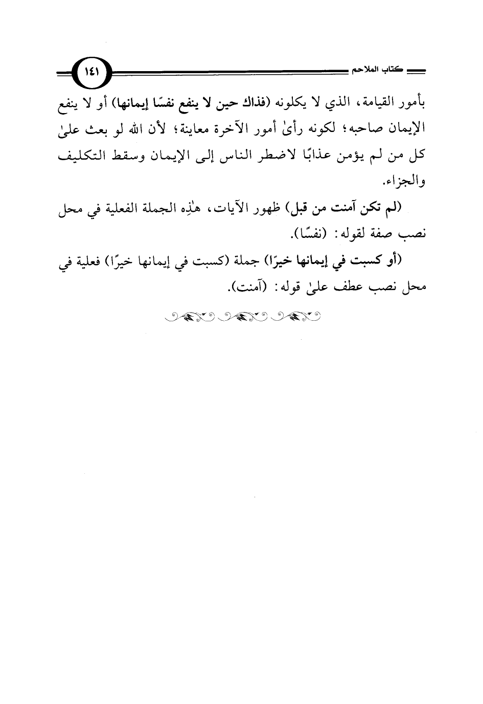 (لم تكن آمنت من قبل) ظهور الآيات، هذِه الجملة الفعلية في محل نصب صفة لقوله: (نفسًا).