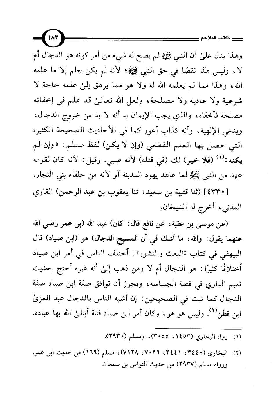 (¬2) البخاري (3440، 3441، 7026، 7128)، مسلم (169) من حديث ابن عمر.