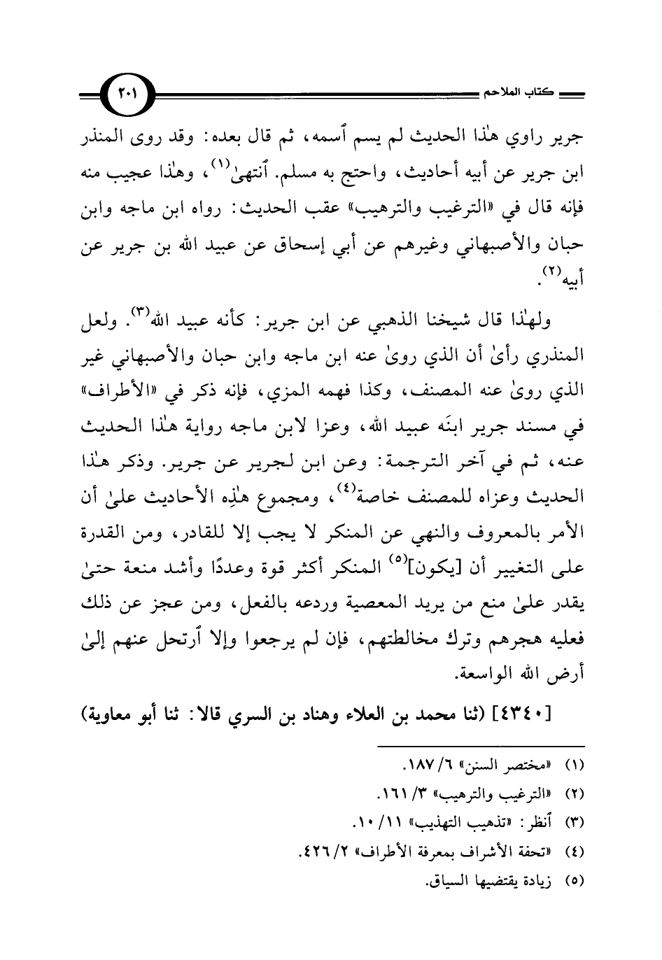 [4340] (ثنا محمد بن العلاء وهناد بن السري قالا: ثنا أبو معاوية)