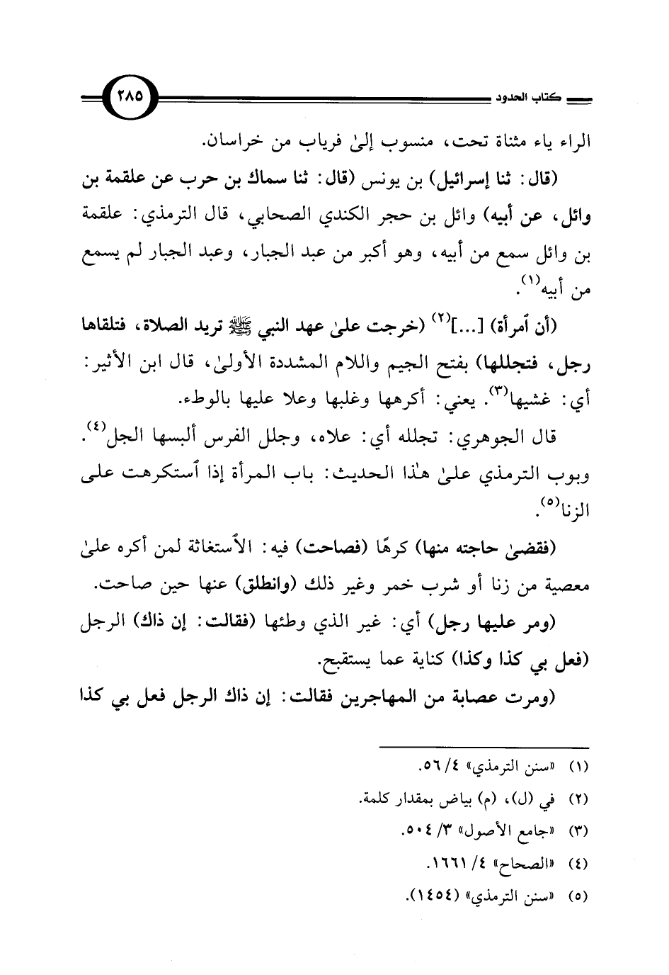 قال الجوهري: تجلله أي: علاه، وجلل الفرس ألبسها الجل (¬4). وبوب الترمذي على هذا الحديث: باب المرأة إذا استكرهت على الزنا (¬5).