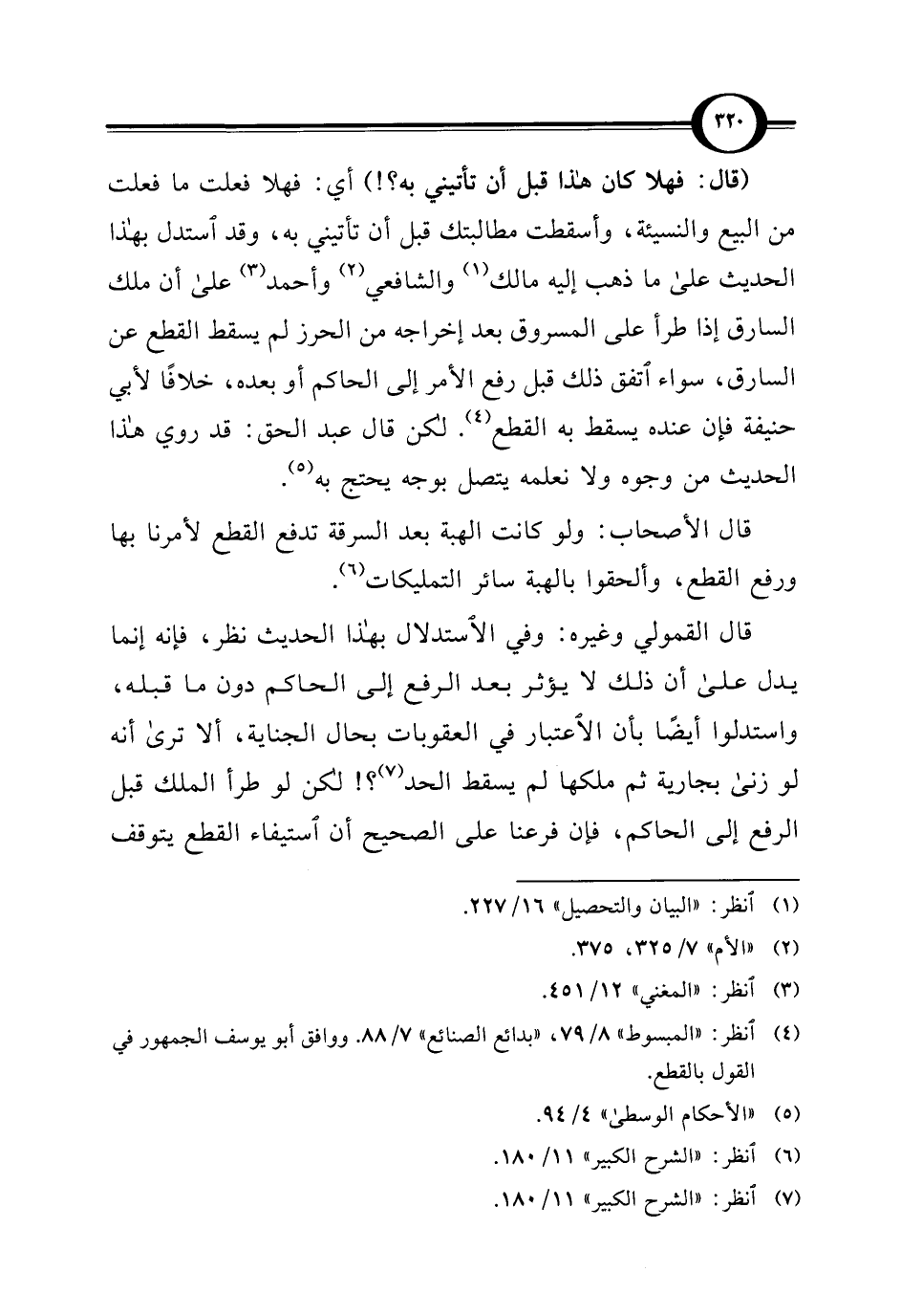 (¬4) انظر: "المبسوط" 8/ 79، "بدائع الصنائع" 7/ 88. ووافق أبو يوسف الجمهور في القول بالقطع.