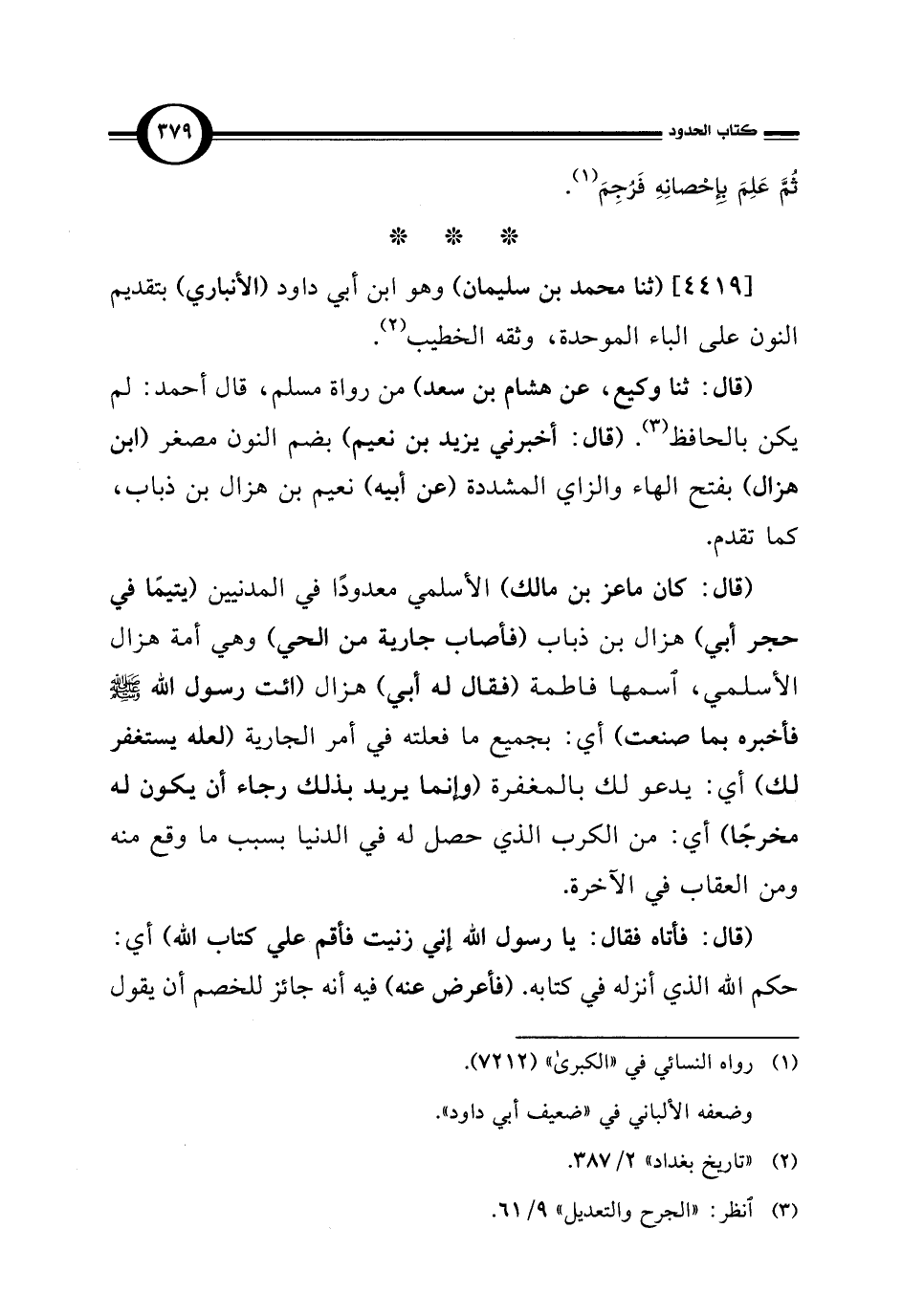 [4419] (ثنا محمد بن سليمان) وهو ابن أبي داود (الأنباري) بتقديم النون على الباء الموحدة، وثقه الخطيب (¬2).