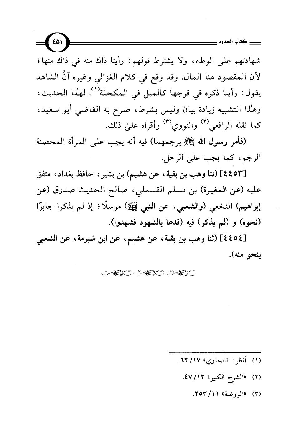 [4453] (ثنا وهب بن بقية، عن هشيم) بن بشير، حافظ بغداد، متفق عليه (عن المغيرة) بن مسلم القسملي، صالح الحديث صدوق (عن إبراهيم) النخعي (والشعبي، عن النبي -صلى اللَّه عليه وسلم-) مرسلًا؛ إذ لم يذكرا جابرًا (نحوه) و (لم يذكر) فيه (فدعا بالشهود فشهدوا).