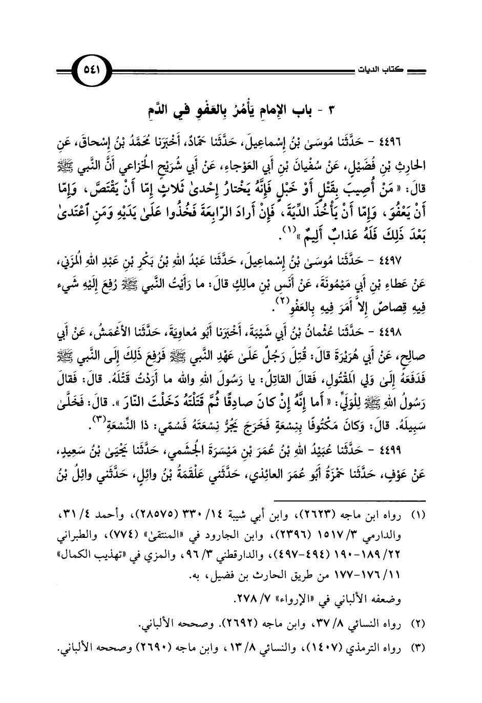 3 - باب الإِمامِ يَأْمُرُ بِالعَفْوِ في الدَّمِ