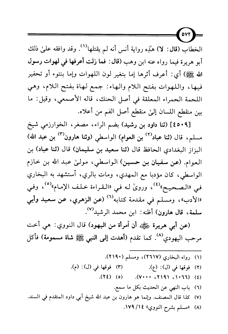 [4509] (ثنا داود بن رشيد) بضم الراء، مصغر، الخوارزمي شيخ مسلم، قال (ثنا عباد (¬2) بن العوام) الواسطي (وثنا هارون (¬3) بن عبد اللَّه) البزاز البغدادي الحافظ قال (ثنا سعيد بن سليمان) قال (ثنا عباد) بن العوام. (عن سفيان بن حسين) الواسطي، مولى عبد اللَّه بن خازم الواسطي، كان مؤدبا مع المهدي، ومات بالري، استشهد به البخاري في "الصحيح" (¬4)، وروى له في "القراءة خلف الإمام" (¬5)، وفي "الأدب"، ومسلم في مقدمة كتابه (¬6) (عن الزهري، عن سعيد وأبي سلمة، قال هارون) أظنه: ابن محمد الرشيد (¬7).