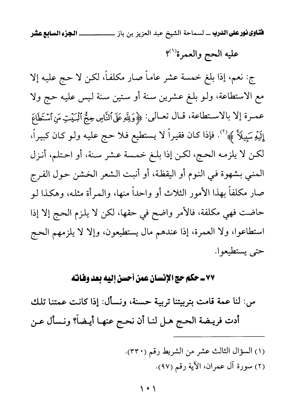 (¬1) السؤال الثالث عشر من الشريط رقم (330).