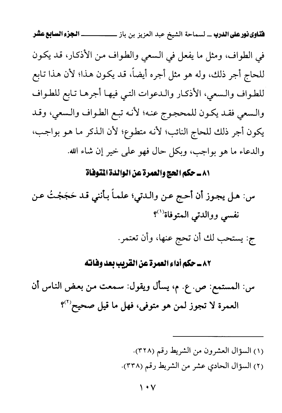 82 - حكم أداء العمرة عن القريب بعد وفاته