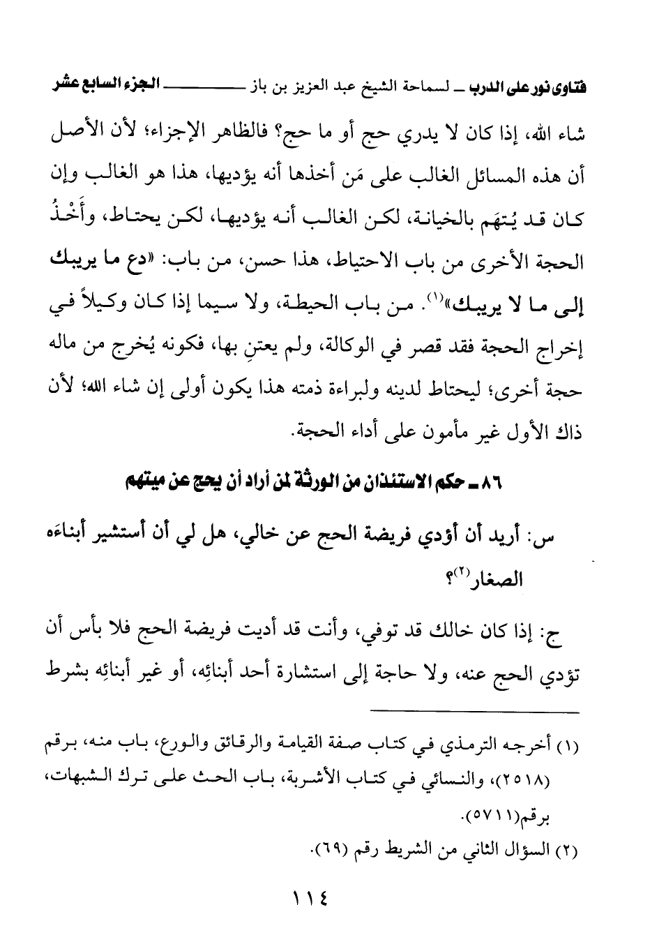 86 - حكم الاستئذان من الورثة لمن أراد أن يحج عن ميتهم