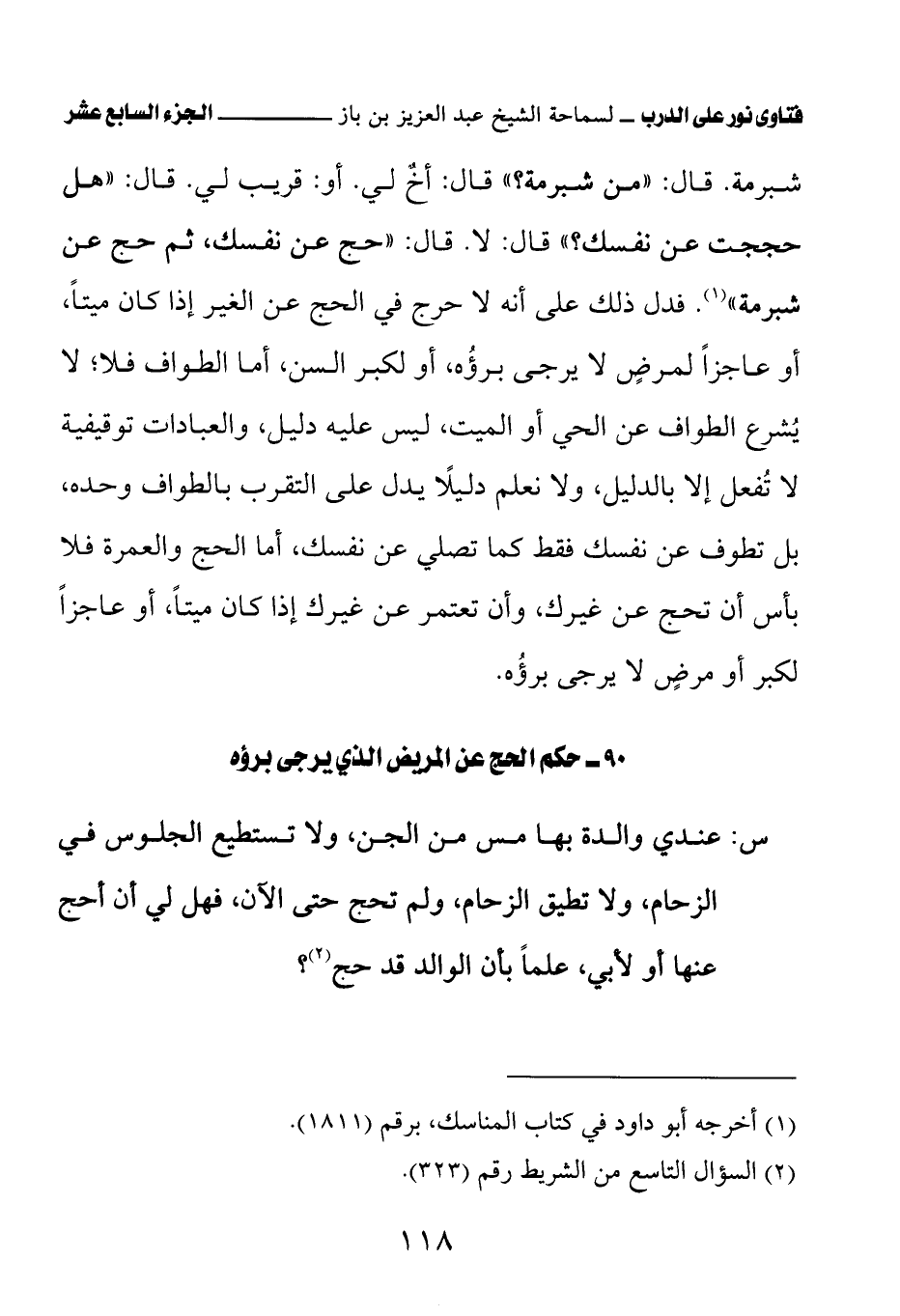 90 - حكم الحج عن المريض الذي يرجى برؤه