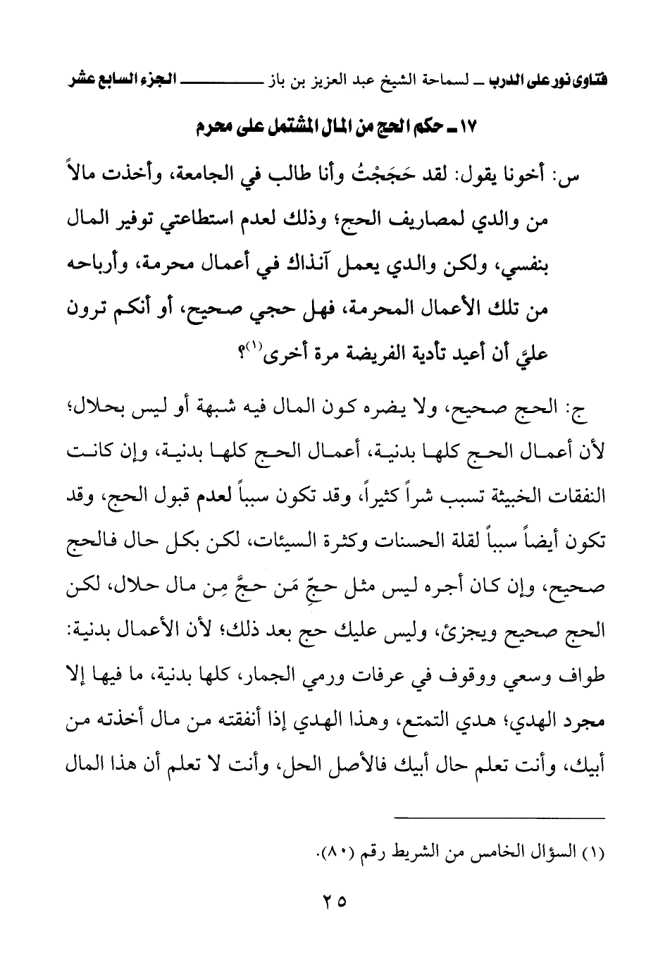 (¬1) السؤال الخامس من الشريط رقم (80).