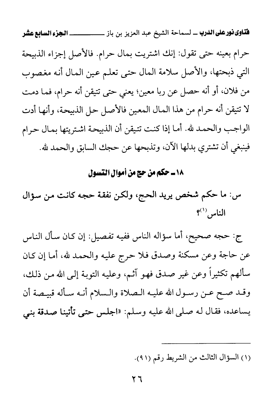 18 - حكم من حج من أموال التسول