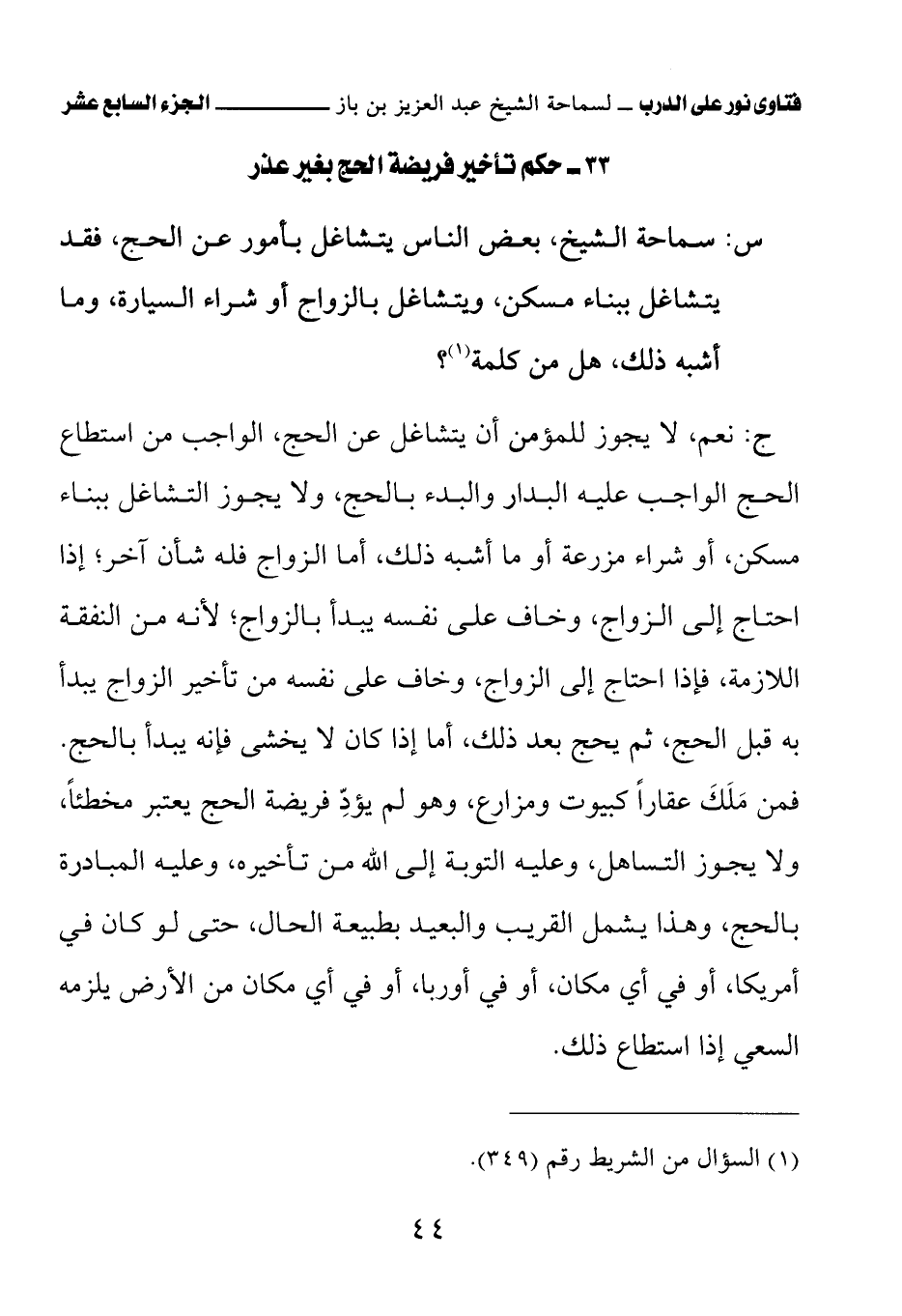 33 - حكم تأخير فريضة الحج بغير عذر