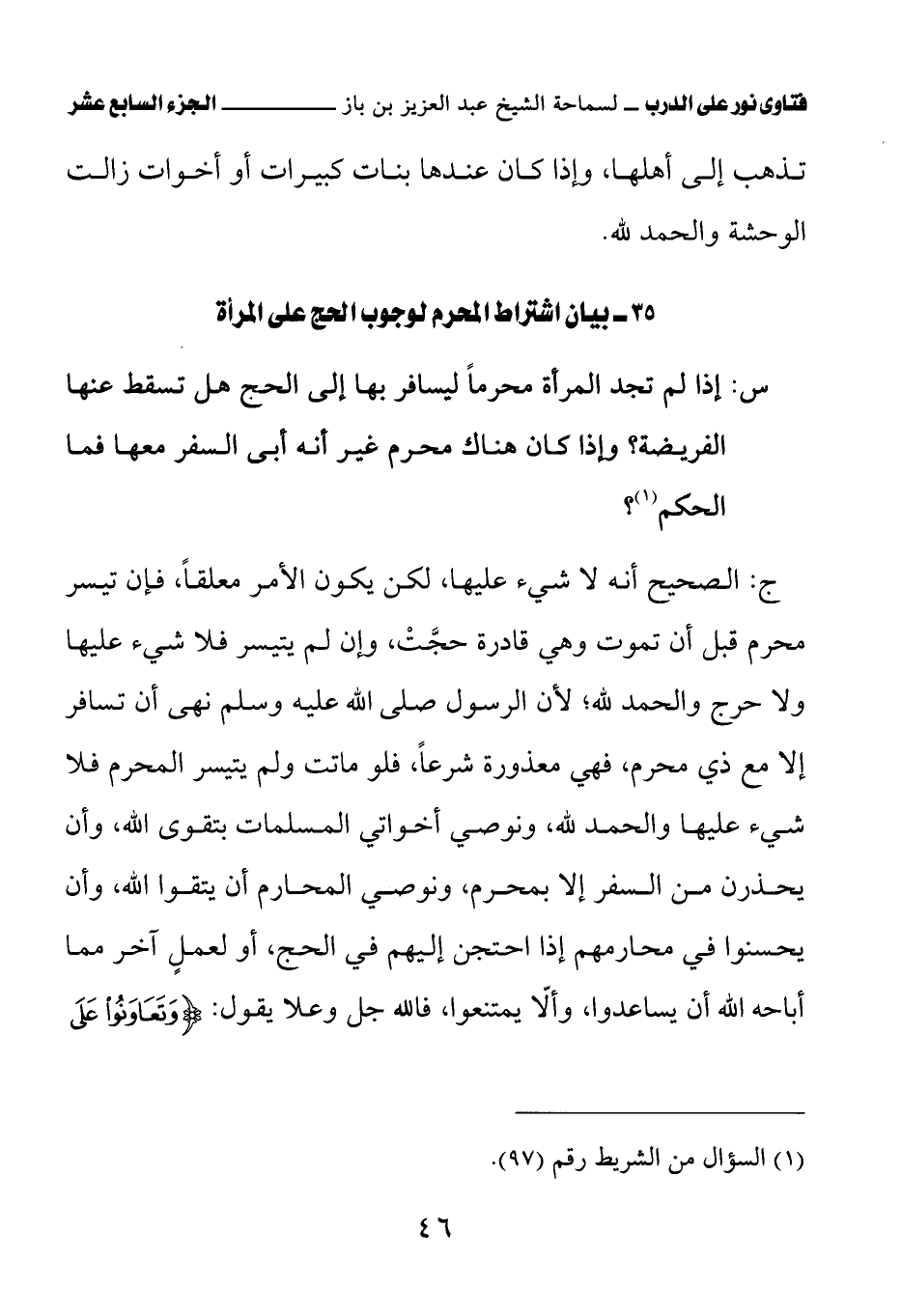 35 - بيان اشتراط المحرم لوجوب الحج على المرأة