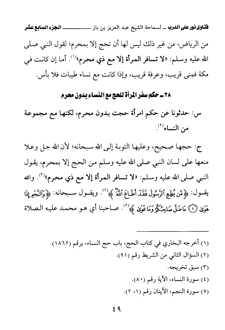 38 - حكم سفر المرأة للحج مع النساء بدون محرم