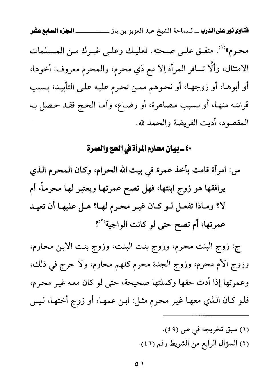 40 - بيان محارم المرأة في الحج والعمرة