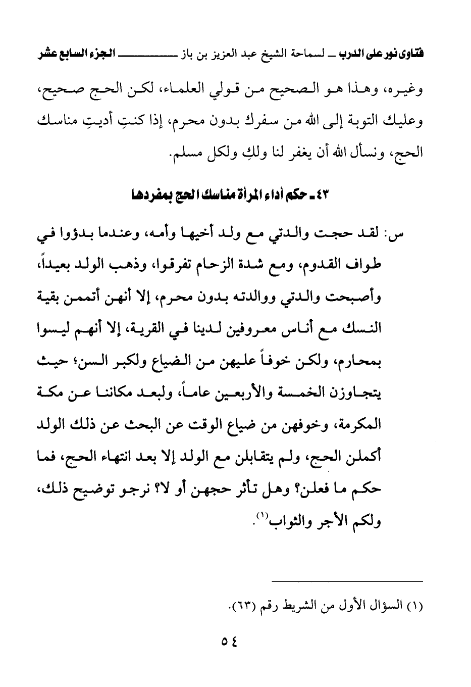 43 - حكم أداء المرأة مناسك الحج بمفردها