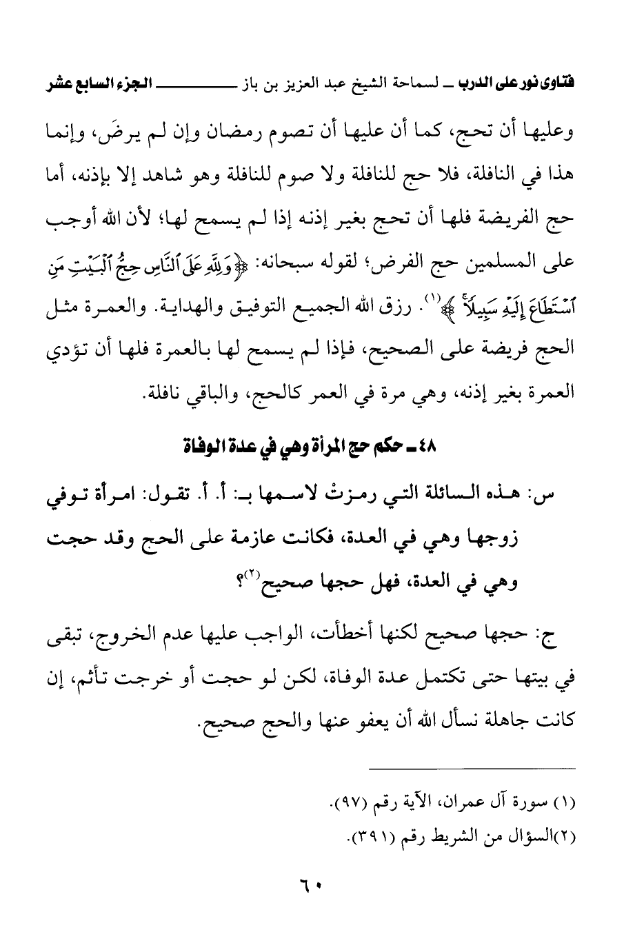 48 - حكم حج المرأة وهي في عدة الوفاة
