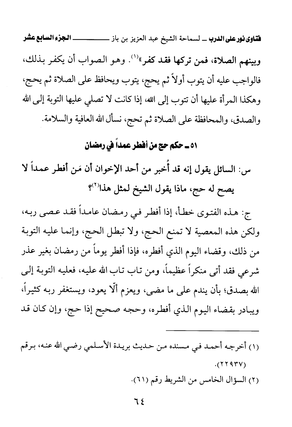كتاب فتاوى نور على الدرب لابن باز بعناية الشويعر (اسم الجزء: 17)