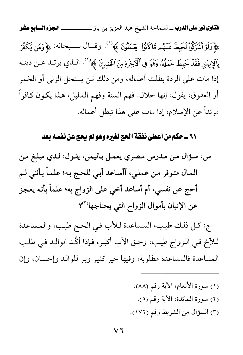 كتاب فتاوى نور على الدرب لابن باز بعناية الشويعر (اسم الجزء: 17)