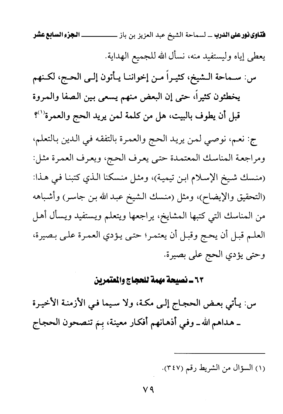كتاب فتاوى نور على الدرب لابن باز بعناية الشويعر (اسم الجزء: 17)